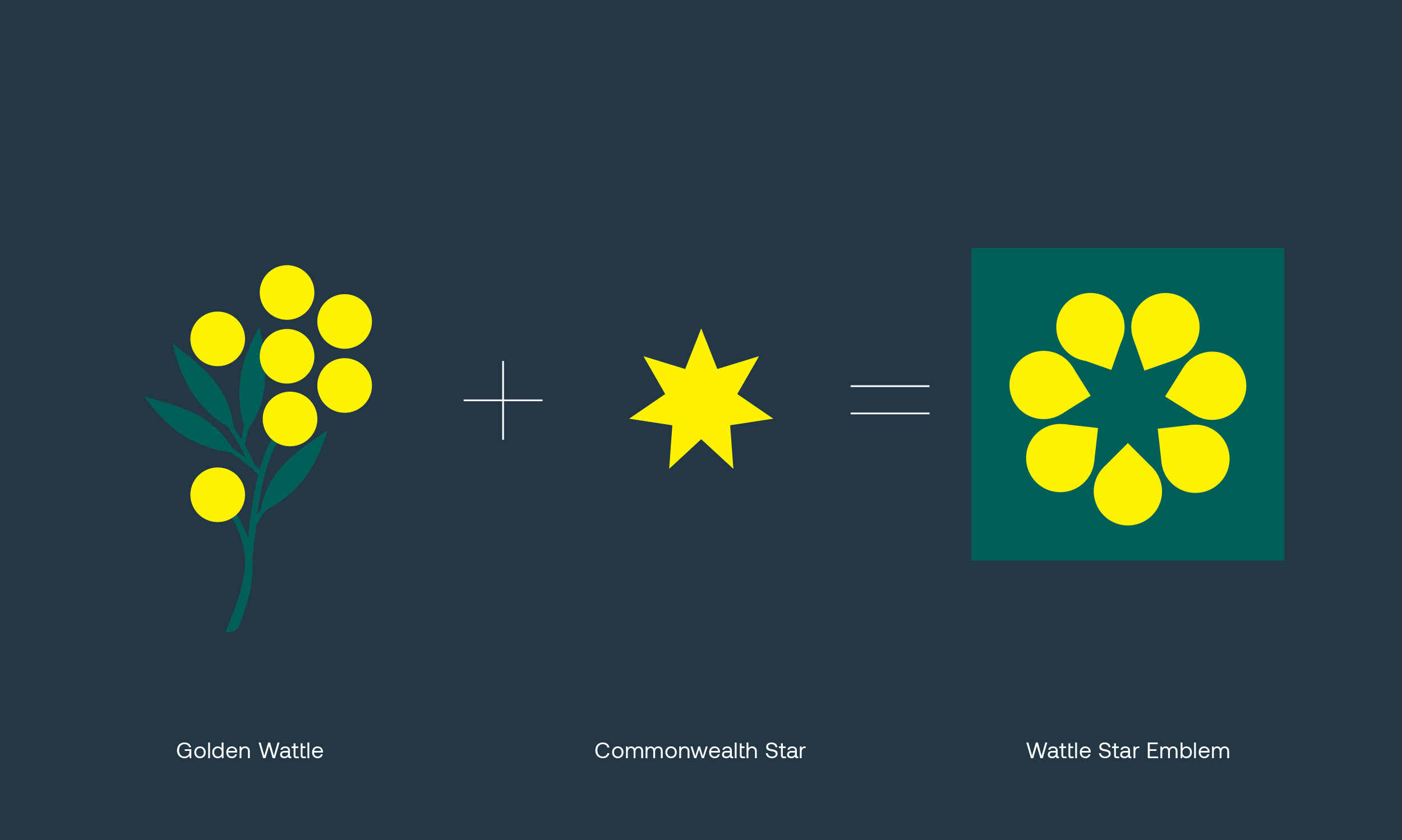 The wattle star emblem visually references the golden sun on the Aboriginal flag and the central device and guiding star on that of the Torres Strait Islander flag.